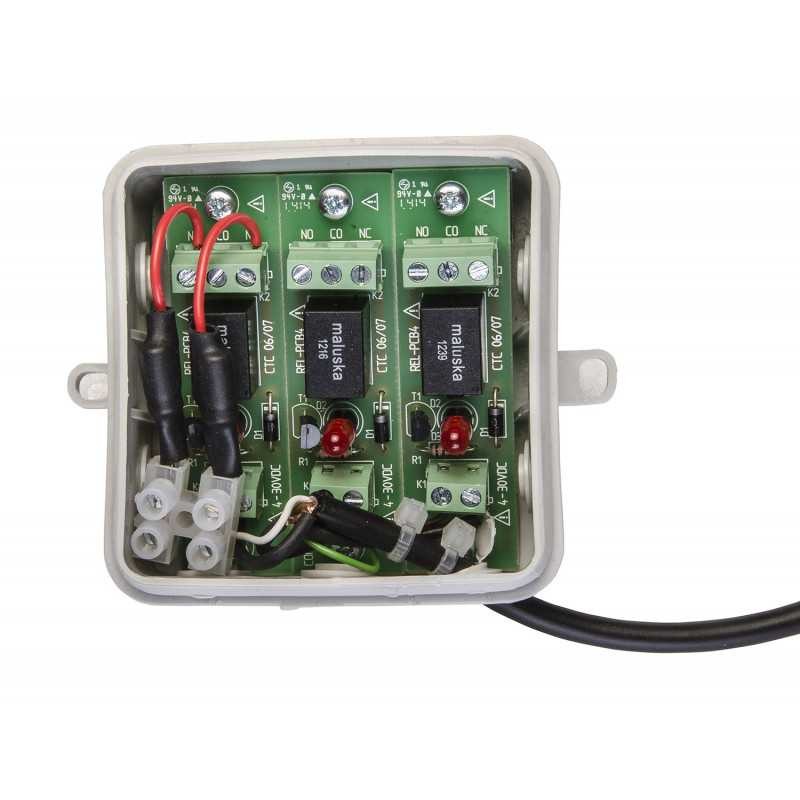 Örneğin Neets I / O'larının açık-kapı çıkışlarının potansiyel ayrımı için 3 röle değişim kontağı, ayrılmış kontrol girişli 12 VDC. 42V, 1A'ya kadar Değiştirilebilir Çıkış Voltajı Boyutlar: 82 x 82 x 38 mm (LxWxH)