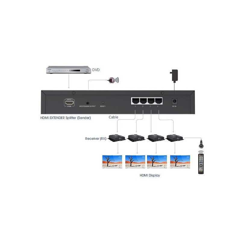HDMI splitter, aynı anda uyumlu alıcılara tek CAT6 / 6a / 7 kablosu üzerinden...